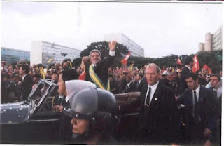 redemocratização em 1985, um presidente eleito pelo voto direto passa a faixa